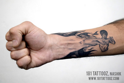 The Legendary fighter and actor Bruce Lee had an iconic one-inch punch that once drove a man back 16 feet after he delivered the hit. This is realistic and 3D tattoo design of Bruce Lee Punch.
