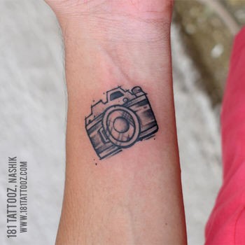 Camera tattoo resembles love for photography, the love of capturing unforgettable moments. Small camera Tattoo done with line work shows client’s love and passion for his profession.