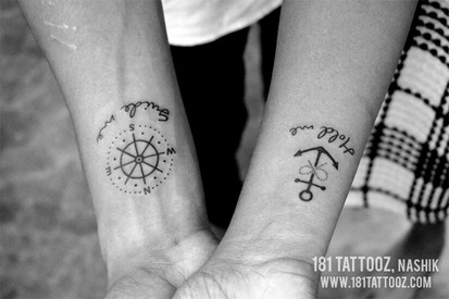Couples these days like anchor and wheel tattoos as a way to represent their dedication and guidance to each other. The quote Hold me - Guide me in this tattoo add a clear motto of relationship.