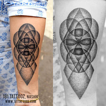 A beautiful illustration with combination of geometric shape. The flawless dot work in these geometric shapes creates an illusion of depth.