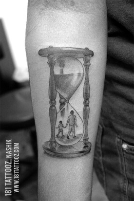 Hourglass is a symbol of running time. This tattoo of hourglass with father and son; shows that we should spend more time with our loved ones before the time runs out.