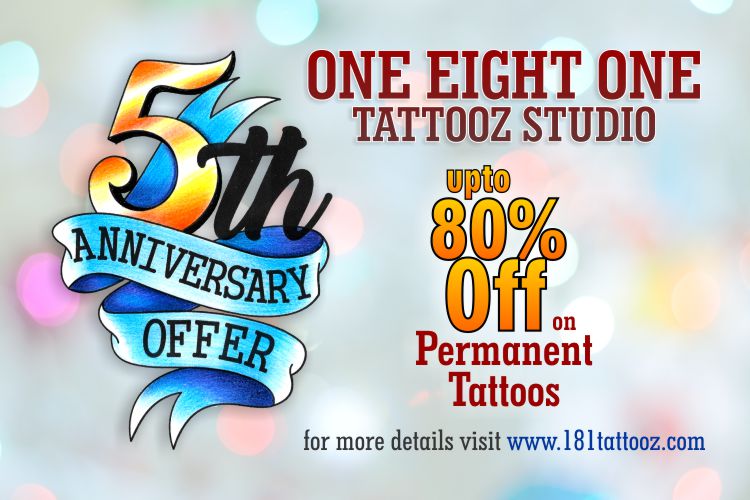 181 Tattooz Studio is turning 5. We stepped in the city to prosper, flourish and give our fullest to Art. On the Happiest Occasion of our 5 year Anniversary, we are offering huge discounts.