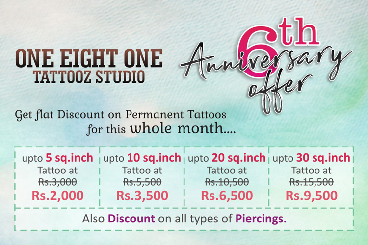 On 10th Oct 2014 we stepped in Nashik with the one and only 181 Tattooz Studio, with a passion for art. We are happy to serve tattoo lovers for about 6 years. We always strive to give the best and spread the art. We thank everyone who supported us and our clients of course- without them we wouldn’t be here. So here we have a special offer on occasion of our 6th Anniversary…
