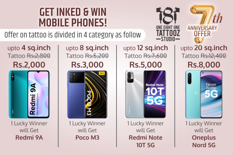 We are turning 7 this year and 181 Tattooz Studio brings some never before seen combination of Gifts and Offers