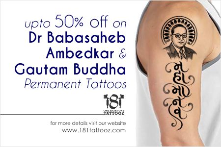 On the occasion of Dr Babasaheb Ambedkar Jayanti, 181 Tattooz is offering a discount of upto 50% on all Dr. Babasaheb Ambedkar & Lord Gautam Buddha tattoo designs.