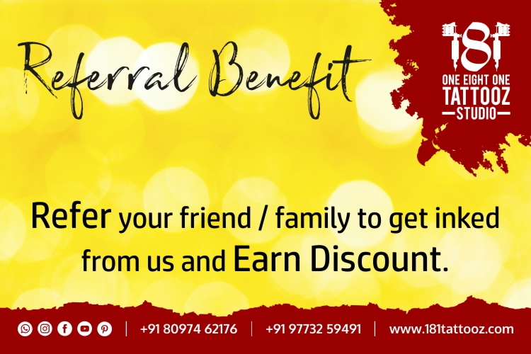 If your Referred ones is getting a tattoo below Rs.5,000/- you will earn Rs.500/- Discount